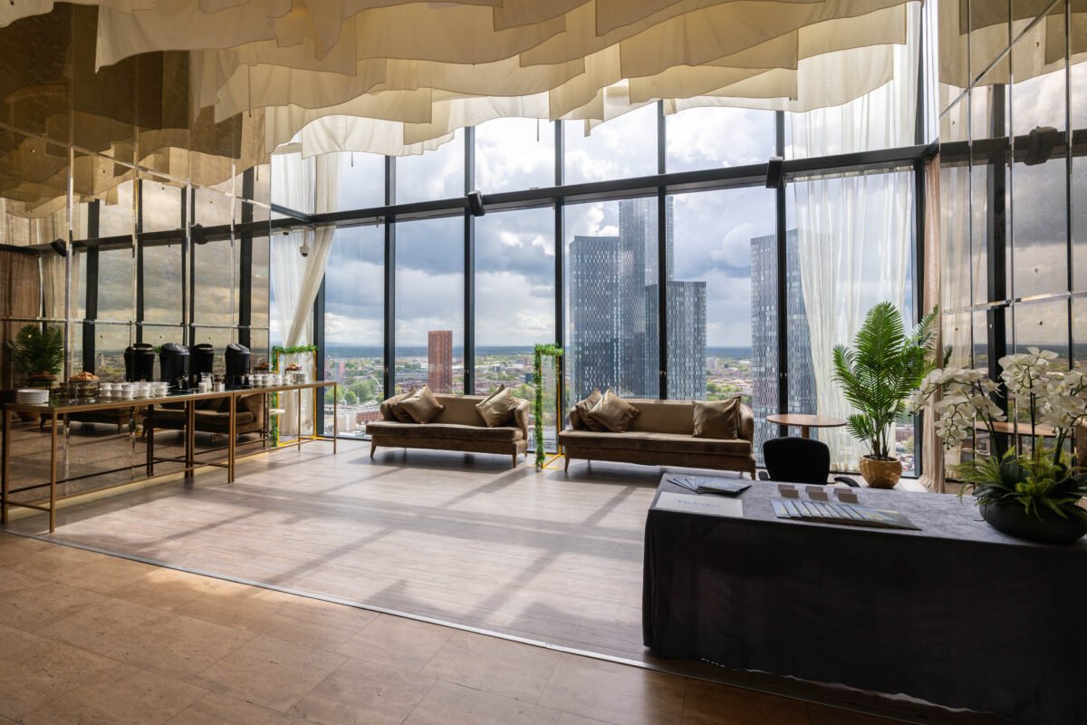 Sitting high above the Manchester Metropolis, Cloud 23 is located in the heart of the city centre. An iconic part of the Manchester skyline in itself, Cloud 23 has the most complete panoramic views of the city and beyond. Work with our team of experienced event professionals to plan your bespoke meeting or event in one of the most unique venues in Manchester. Hold your residential conference in Cloud 23 and enjoy exclusive use of the 23rd floor throughout the day. Exclusive hire means delegates will have use of a private lift up to the 23rd floor, as well as a self contained area for catering and your meeting, with all your refreshments breaks and conference lunch taking place within the space. A personalised registration will be arranged for your delegates so that they can check-in to their rooms quickly at the end of the conference, full exclusive use can hold up to 315 standing. Our largest space, Iris, offers ultimate flexibility, allowing the room to be transformed in to a variety of theatre-style set-ups with room for up to 100 delegates. Perfect for presentations where little note-taking is necessary. Our smallest lounge, Zeus, is perfect for more intimate meetings and gatherings. Ideal for a boardroom setting by day or transformed into a lounge by night. We can host drinks receptions, as well as including food options, such as canapés, bowl food or a plated dinner.